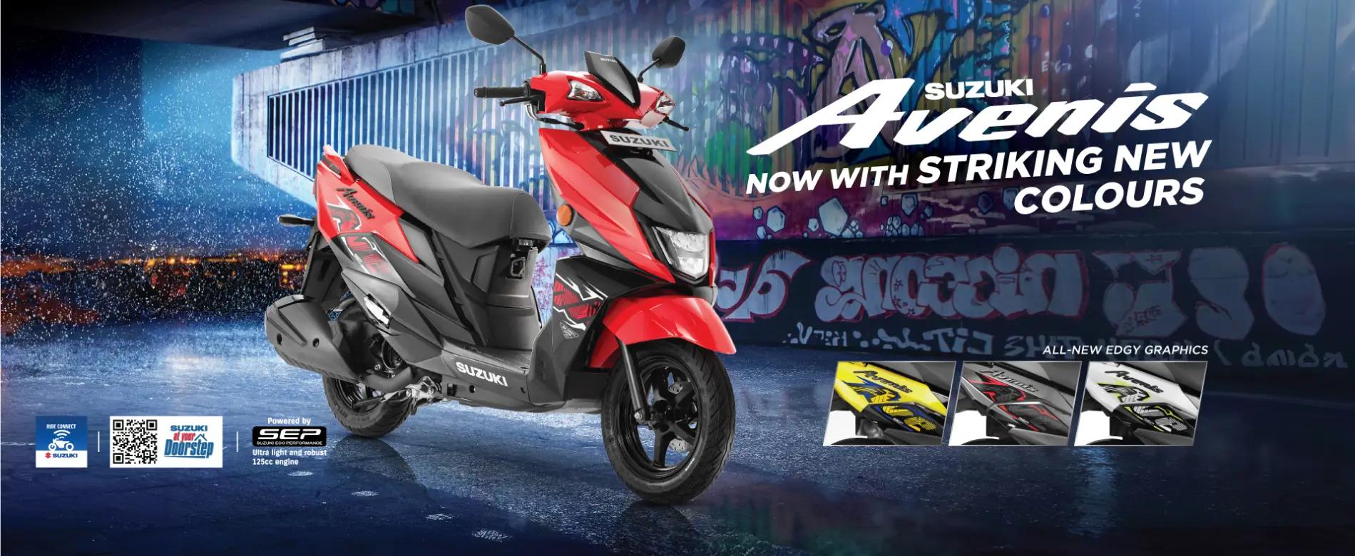 Your search for a Suzuki AVENIS dealer has brought you to Rohini Suzuki, Rohini, Delhi, your one-stop destination to buy the new Suzuki AVENIS in Delhi ! Check out the on-road price, features, specifications, and accessories, and book a test ride online to experience everything on offer! Once you buy the Suzuki AVENIS, get ready for exhilarating rides every day. Offering top-notch features, specifications, and accessories, the Suzuki AVENIS delivers the perfect balance of powerful performance, stylish design, and fine craftsmanship. It also comes with a hassle-free and enjoyable ownership experience for years to come.